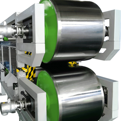 雙帶式連續(xù)復(fù)合成型系統(tǒng)通過上下兩條循環(huán)壓合帶傳遞溫度、壓力,將兩種或兩種以上材料進(jìn)行熱壓復(fù)合,本系統(tǒng)是集加熱、壓合、定厚、冷卻等功能為一體的裝置。